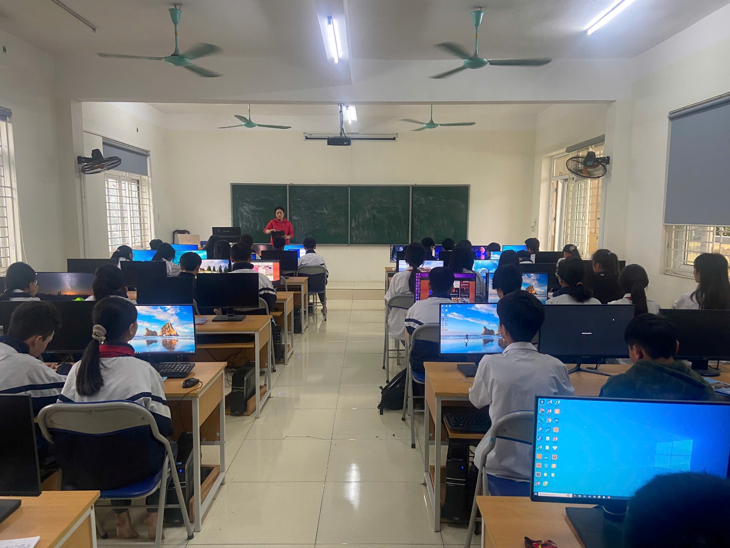 Phòng Tin học: Phòng được trang bị hơn 50 máy tính hiện đại, kết nối mạng, phần mềm hỗ trợ học tập và phát triển kỹ năng công nghệ thông tin cho học sinh.